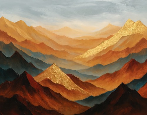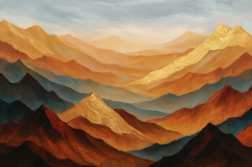 Extra Large Framed Golden Sunset Mountains Warm Orange and Gold Layered Peaks Illustration Home Living Room Bedroom Decor (Frame Assembly Required)