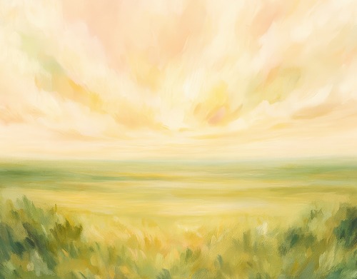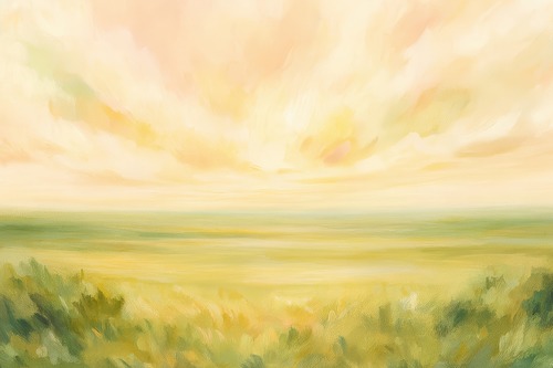 Extra Large Framed Golden Sunrise Meadow Warm Abstract Landscape Illustration Home Living Room Bedroom Decor (Frame Assembly Required)