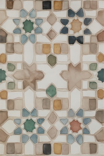 Removable Sticker Mural Southwest Aztec Granite Marble Tile Pattern Abstract Shapes Digital Minimalism Bohemian RelaxCalm Living Room Bedroom Office