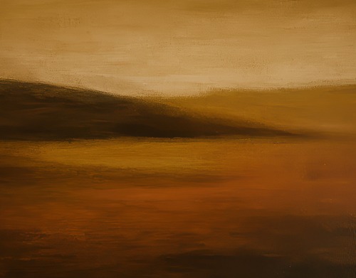 Large Framed Golden Desert Horizon Warm Earth Tone Abstract Landscape Illustration Home Living Room Bedroom Decor (Frame Assembly Required)