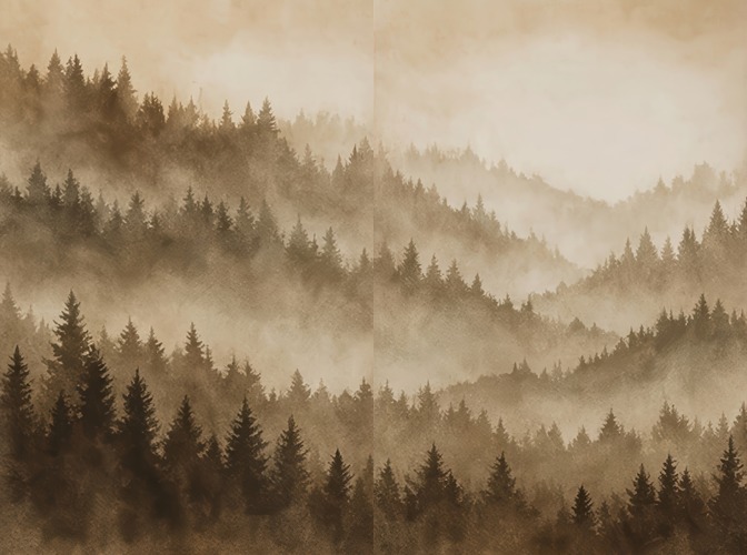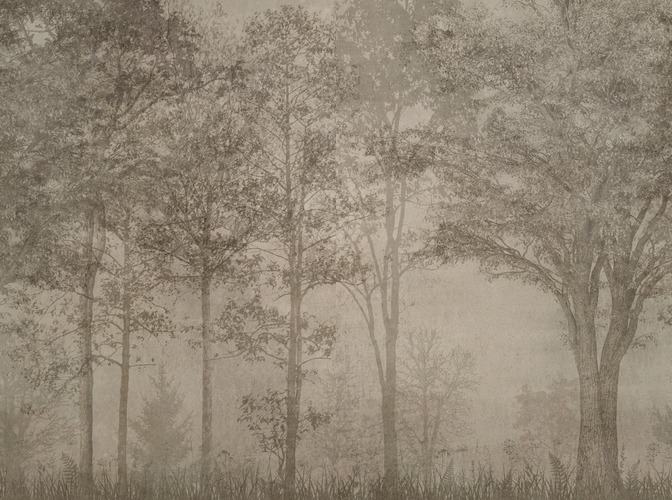 Premium Frame Misty est Trees in Sepia Tone Vintage Landscape Illustrations Fine Traditional Iconic RelaxCalm Living Room Bedroom Office