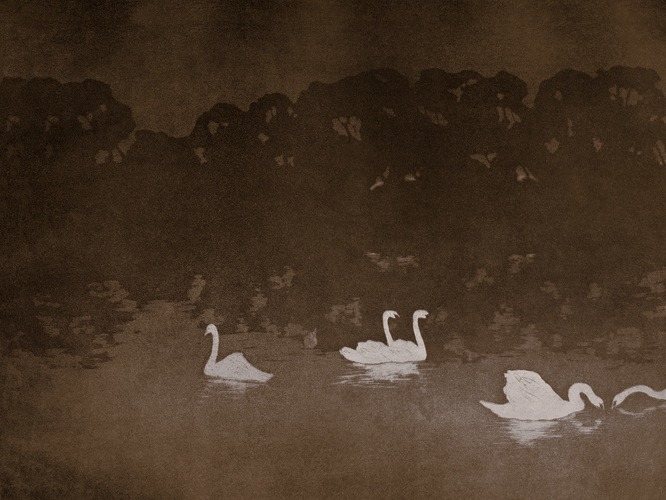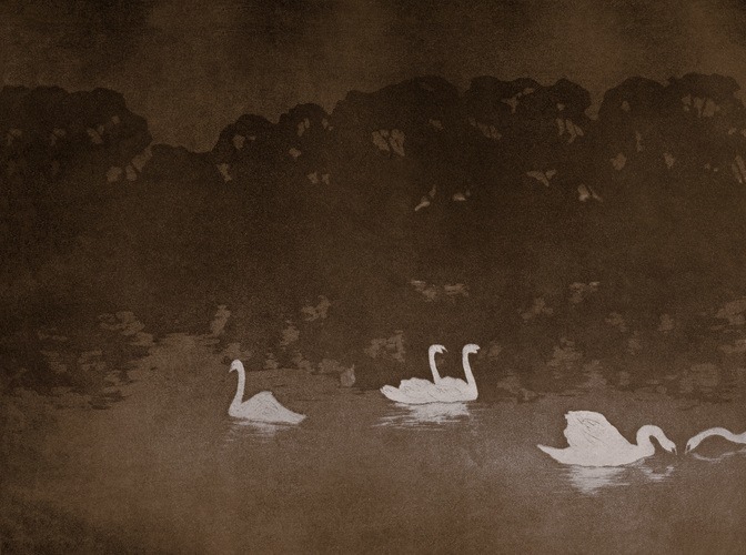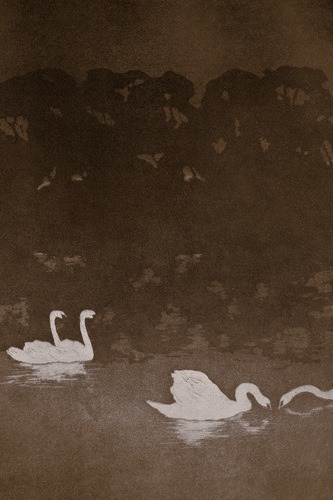 MUDECOR Premium Framed Swan Lake Silhouette Sepia Tone Nature Landscape Illustrations Fine Decorative Historic Zen Living Room Bedroom Office BLACK