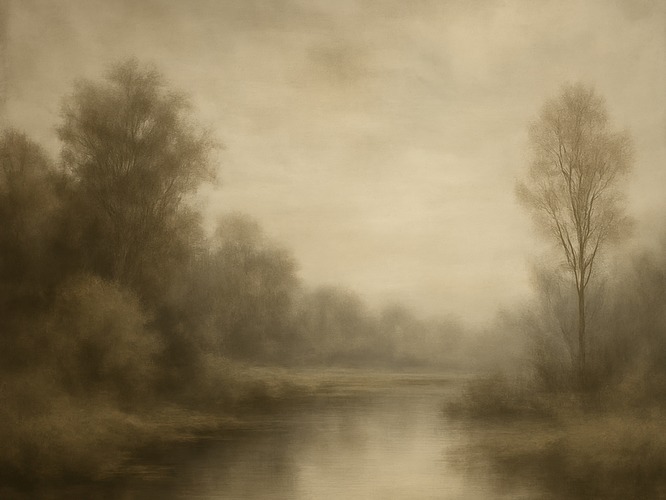 MUDECOR Premium Framed Misty River est Sepia Tone Nature Landscape Illustrations Fine Decorative Retro Historic Zen Living Room Bedroom Office Gold