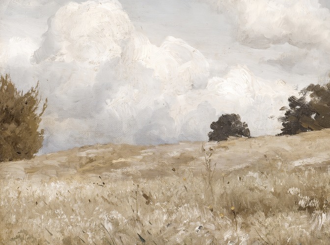 MUDECOR Premium Framed Cloudy Field Landscape Neutral Tone Prairie Tree Illustrations Fine Decorative Retro Historic Living Room Bedroom Office Gold