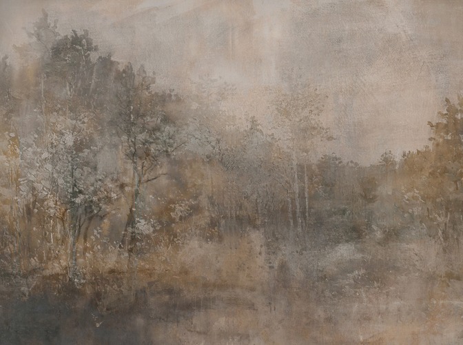 MUDECOR Premium Framed Misty Pine est Soft Tone Nature Landscape Illustrations Fine Decorative Retro Historic Zen Living Room Bedroom Office Gold