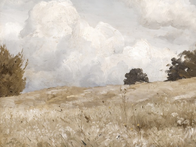 MUDECOR Premium Framed Cloudy Field Landscape Neutral Tone Prairie Tree Illustrations Fine Decorative Retro Historic Zen Living Room Bedroom Office Gold