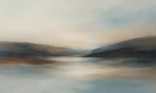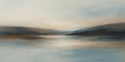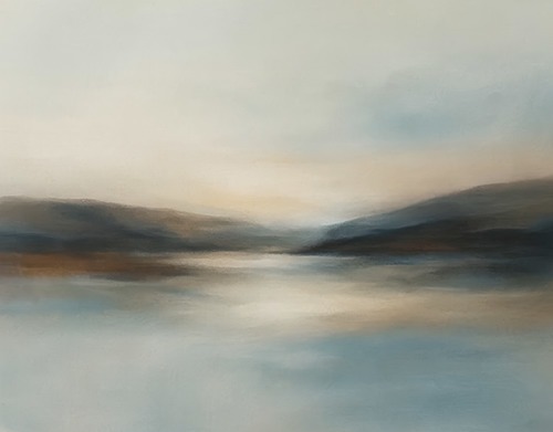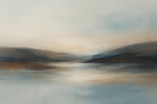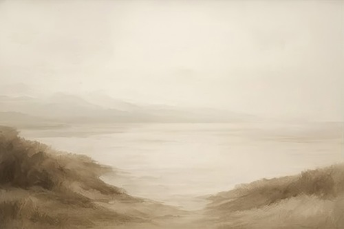 MUDECOR Framed Soft Mist Neutral Abstract Tranquil Beige Gradient Illustrations Realism Decorative Scenic Panoramic Earth Living Room Bedroom Office WHITE