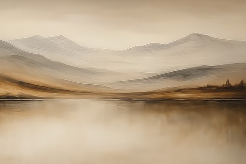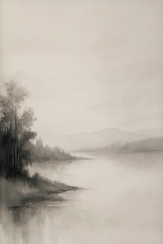 Premium Frame Tranquil Lake with Distant Mountains Minimalist Ink Landscape Illustrations Fine Traditional Iconic RelaxCalm Living Room Bedroom Office
