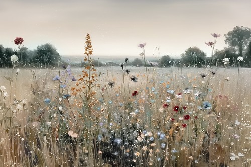 Extra Large Framed Tranquil Countryside Landscape Vintage Nature Scene with Trees and Pasture Home Living Room Bedroom Decor (Frame Assembly Required)