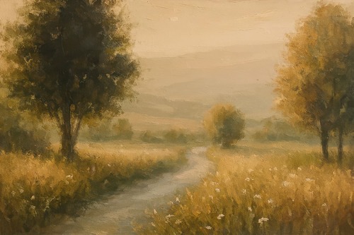 MUDECOR Framed Golden Meadow Path Landscape Tranquil Country Road Minimalist Multicolor Cool Living Room Bedroom Office Black