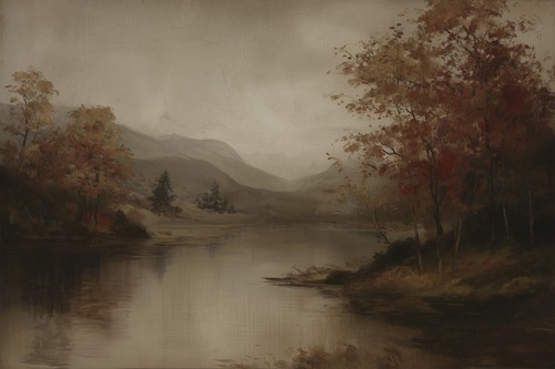MUDECOR Premium Framed Tranquil Riverside Autumn Landscape Illustrations Fine Decorative Retro Historic Zen Living Room Bedroom Office Natural