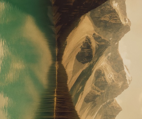 Premium Frame Misty Lake with Rowboats Sepia Drawing Tranquil est and Mountain Illustrations Fine Traditional Iconic Living Room Bedroom Office Natural