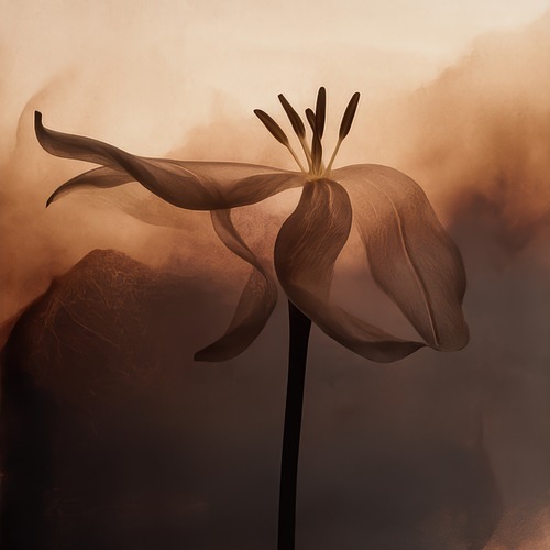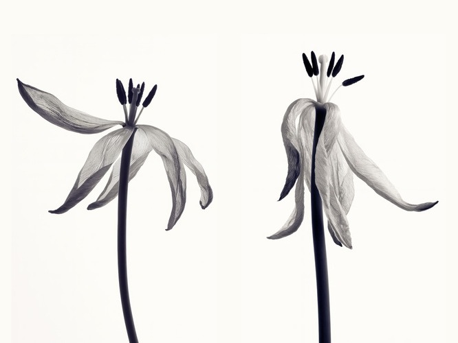 Framed Black Gray Grunge Tulip Flower Nature Wilderness Digital Decorative Minimal Rustic CalmChic Zen Living Room Bedroom Office White