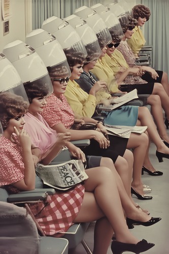 MUDECOR Framed Retro Hair Salon Women Under Dryers Vintage Illustrations Bohemian Living Room Bedroom Office BLACK