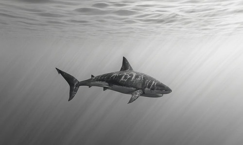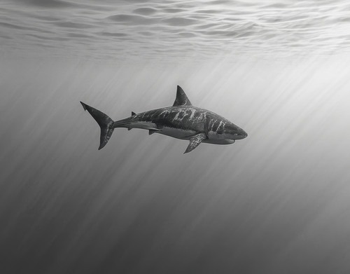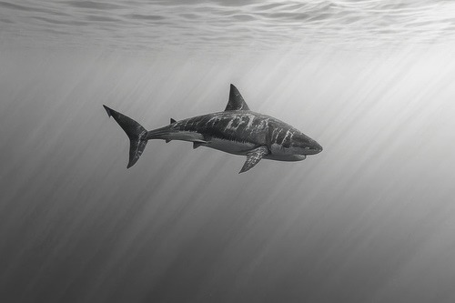 SIGNLEADER XL Framed Black and White Great White Shark Underwater (Frame Assembly Required)