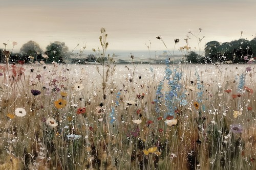 Wildflower Meadow Colorful Field Flowers Under Soft Sky Illustrations Fine Traditional Colorful Dark Living Room Bedroom Office