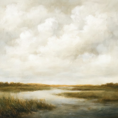 Framed Serene Meadow Under Soft Clouds Light Neutral Landscape Illustrations Rustic Zen Colorful Living Room Bedroom Office BLACK