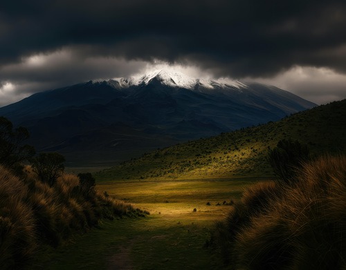 Extra Large Framed Majestic SnowCapped Mountain Under Dark Storm Clouds Home Living Room Bedroom Decor (Frame Assembly Required)