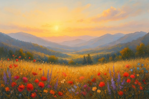 Framed Sunlit Wildflower Valley Bright Sunrise Landscape Decorative Multicolor Colorful Rustic Living Room Bedroom Office NATURAL