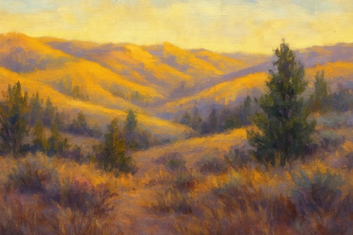 Amber Hills Peaceful Golden Valley Landscape Photography Realism Decorative Elements RelaxCalm Grey Cool Black and White Living Room Bedroom Office