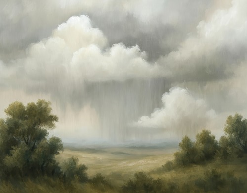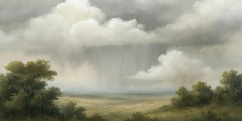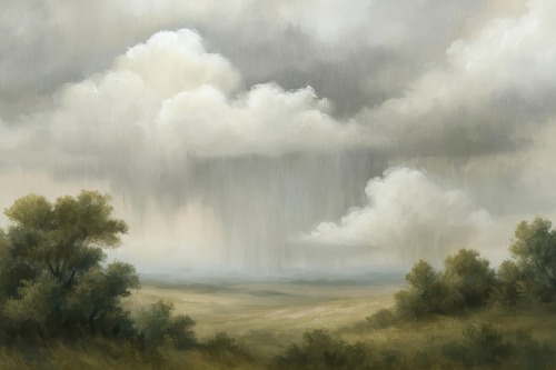 Extra Large Framed Rain Over Valley Moody Cloudy Sky Landscape Illustration Home Living Room Bedroom Decor (Frame Assembly Required)