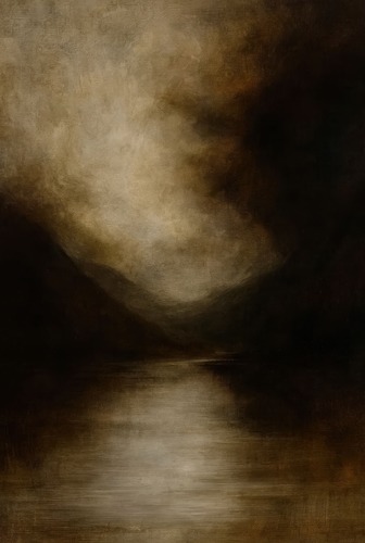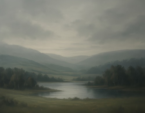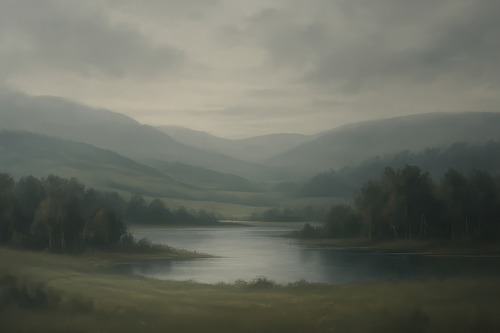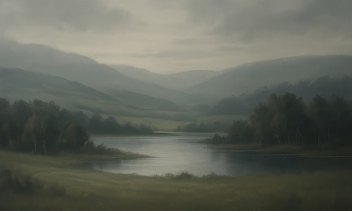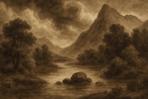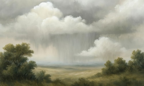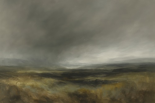 Stormy Valley Landscape Grey Illustrations Impressionism Scenic Colorful Multicolor Living Room Bedroom Office