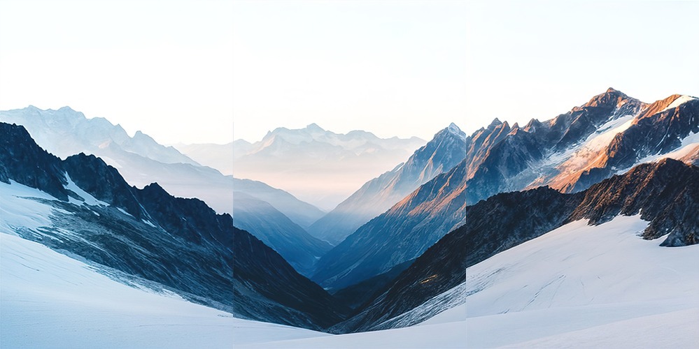 Framed Set Snowy Mountain Valley Majestic Winter Alpine Scene Digital Contemporary Living Room Bedroom Office Black