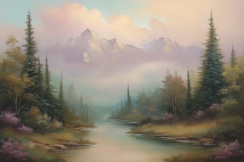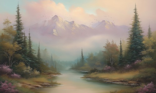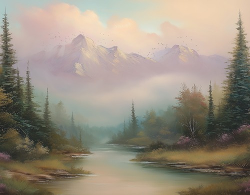 SIGNLEADER XL Framed Soft Pastel Mountain Valley River Landscape (Frame Assembly Required)