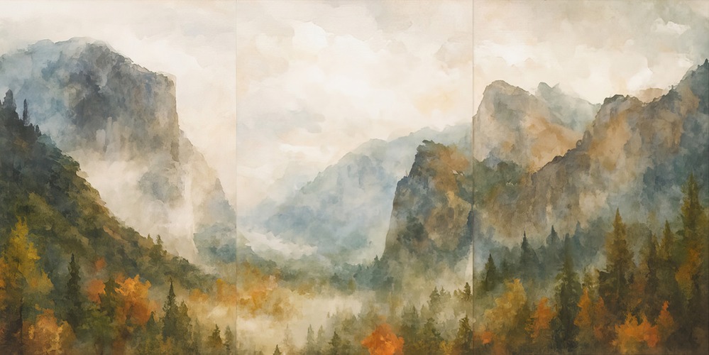 Framed Set Misty Mountain Valley Watercolor Serene Nature Landscape Digital Contemporary Living Room Bedroom Office White