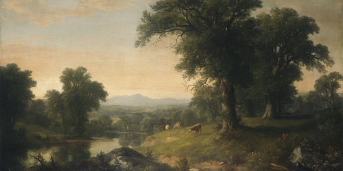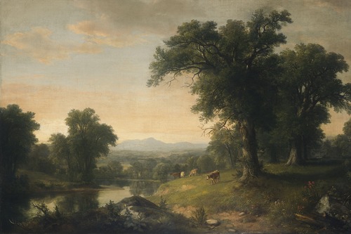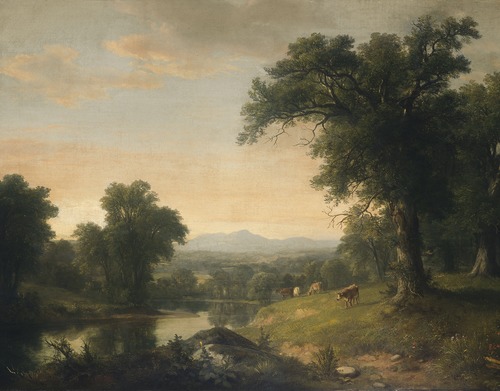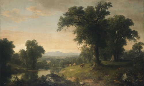 Extra Large Framed Classic River Valley Landscape Countryside with Trees and Cows Illustration Home Living Room Bedroom Decor (Frame Assembly Required)