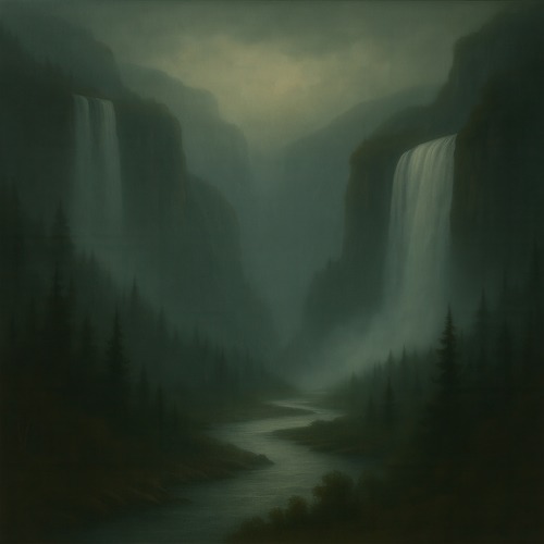 Framed Moody Waterfall Valley Dark est Landscape RelaxCalm Warm Living Room Bedroom Office NATURAL